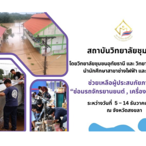 7 ธันวาคม 2568เนื่องในโอกาสวันคล้ายวันประสูติสมเด็จพระเจ้าลูกเธอ เจ้าฟ้าพัชรกิติยาภา นเรนทิราเทพยวดี กรมหลวงราชสาริณีสิริพัชร มหาวัชรราชธิดาน้อมรำลึกในพระมหากรุณาธิคุณข้าพระพุทธเจ้าผู้บริหาร ข้าราชการ และบุคลากรสถาบันวิทยาลัยชุมชน