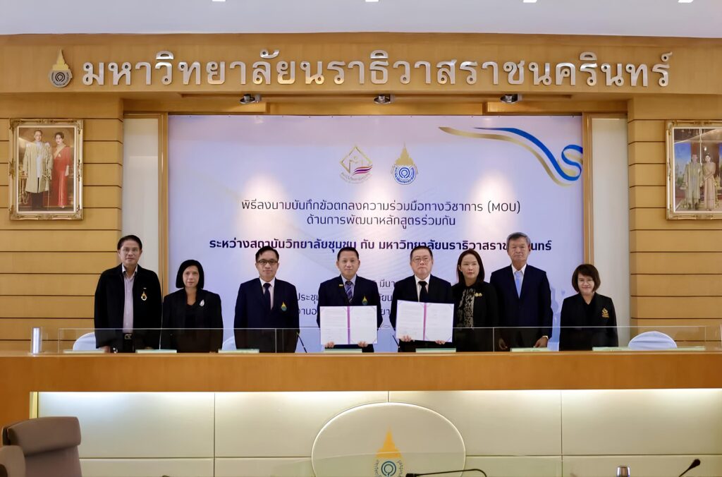 วันที่ 25 มีนาคม 2569 สถาบันวิทยาลัยชุมชน ร่วมกับ มหาวิทยาลัยนราธิวาสราชนครินทร์ จัดพิธีลงนามความร่วมมือทางวิชาการ ( MOU) ณ ห้องประชุมมหาวิทยาลัยนราธิวาสราชนครินทร์ โดยมี นายเจริญชัย วงษ์จินดา ผู้อำนวยการสถาบันวิทยาลัยชุมชน ลงนามร่วมกับ ผู้ช่วยศาสตราจารย์ ดร.ปรีชา สะแลแม อธิการบดีมหาวิทยาลัยนราธิวาสราชนครินทร์ และได้รับเกียรติจากผู้บริหารมหาวิทยาลัยนราธิวาสราชนครินทร์ และผู้บริหารของสถาบันวิทยาลัยชุมชน ร่วมเป็นสักขีพยาน ด้วยสถาบันการศึกษาทั้งสอง ได้เล็งเห็นถึงความสำคัญในการแสดงเจตนารมณ์ร่วมกันในการพัฒนาหลักสูตรที่จัดการศึกษาต่อเนื่องจากหลักสูตรอนุปริญญาของสถาบันวิทยาลัยชุมชนสู่ระดับปริญญาตรีของมหาวิทยาลัย โดยผู้เรียนสามารถเทียบโอนหน่วยกิตและผลการศึกษา เพื่อศึกษาต่อ ในระยะเริ่มจะพัฒนาหลักสูตรร่วมกันใน 4 สาขาวิชา คือ สาขาวิชาการจัดการ สาขาวิชาการบัญชี สาขาวิชาเทคโนโลยีดิจิทัลธุรกิจ และสาขาวิชาเกษตรและการแปรรูป และจะเพิ่มเติมในระยะต่อไป