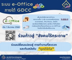 วันที่ 1 ธันวาคม 2568 สถาบันวิทยาลัยชุมชนเริ่มใช้งาน ระบบ e-Office ภายใต้ GDCC