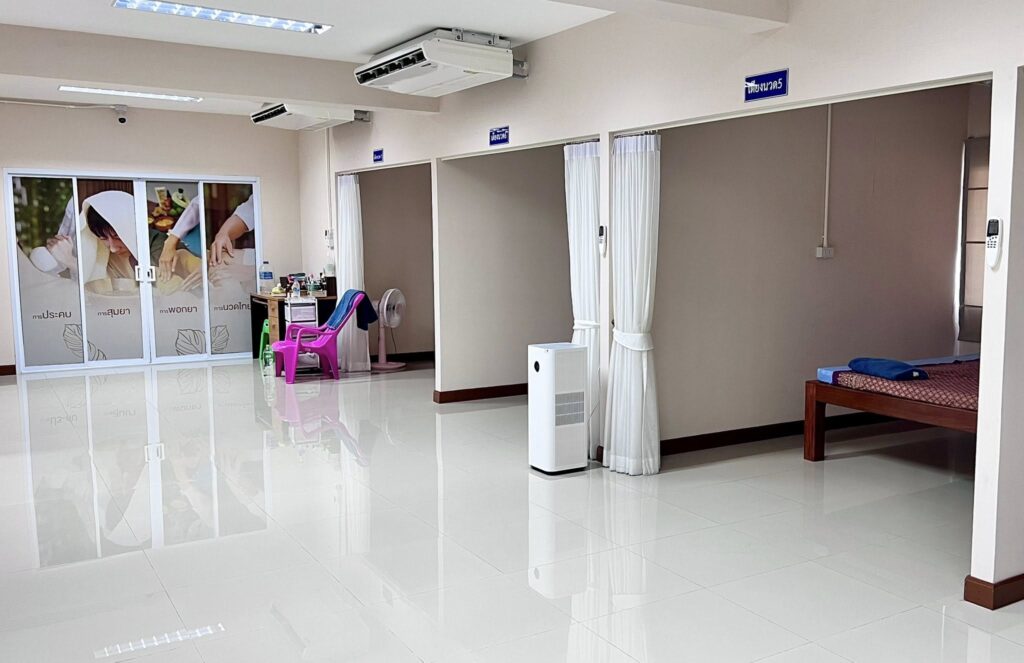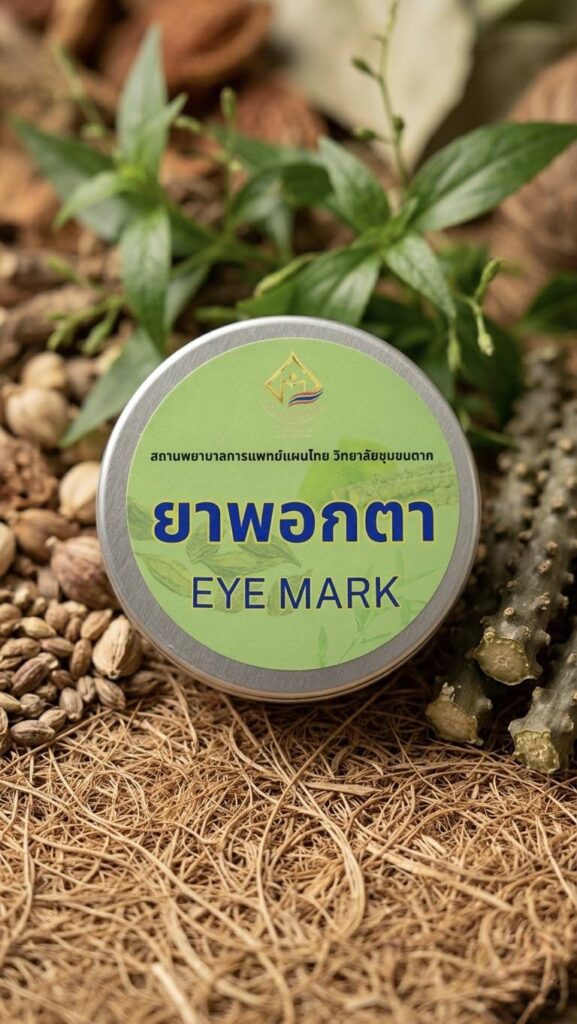 ยาพอกตา และยาพอกเข่า(สูตรร้อน) ซึ่งเป็นสูตรเฉพาะที่ใช้ในสถานพยาบาลฯ โดยการนำสมุนไพรในท้องถิ่นมาปรุงด้วยกรรมวิธีการผลิตด้วยศาสตร์แพทย์แผนไทย โดยแพทย์แผนไทยของสถานพยาบาลปรุงและผลิตในห้องผลิตสมุนไพรของทางสถานพยาบาลฯ